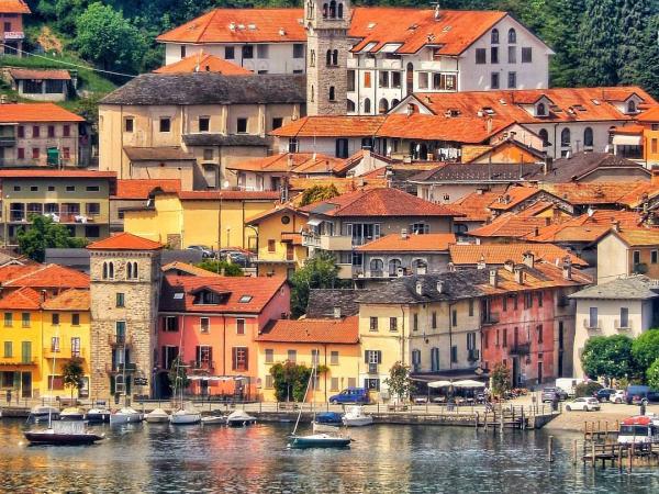 Das pulsierende Zentrum des Lebens in Orta ist ein wahrer Salon unter freiem Himmel mit Blick auf den See. Der rechteckige Platz wird an seinen Längsseiten einerseits von einer Reihe bunter historischer Fassaden und andererseits vom Seeufer selbst begrenzt, wo die Fähren zur Insel anlegen. Es ist sehr angenehm, den Blick auf den See und die umliegenden Berge zu genießen, mit der Insel im Vordergrund, während man bequem auf den Bänken sitzt, die im Schatten großer Bäume liegen. In der nördlichen Ecke steht das Gemeindehaus, ein wunderschöner Broletto aus dem 16. Jahrhundert.