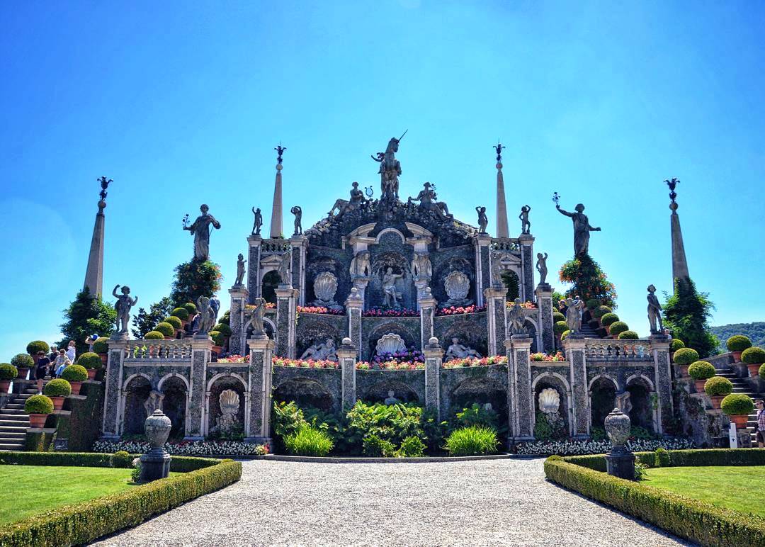 Seit fast 200 Jahren empfängt ein großer Kampferbaum die Besucher, die das große Tor des Gartens durchschreiten. Von hier aus blickt man auf das prächtige Amphitheater, das den zentralen Teil der Insel einnimmt. Der Barockgarten erstreckt sich über Terrassen in unterschiedlichen Höhen, auf denen sich Statuen, Obelisken, Treppen und Steinbalustraden abwechseln. Die Alleen des Gartens führen hinauf zur größten Terrasse, von der aus man einen herrlichen Blick auf den See und den Garten selbst genießen kann.