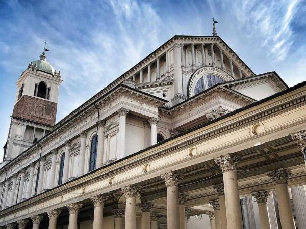Die Geschichte dieses Gebäudes reicht weit zurück: Bereits um das Jahr 350 n. Chr. stand hier eine Basilika. Diese wurde im 11. bis 12. Jahrhundert zerstört und wieder aufgebaut, danach mehrfach umgebaut und verändert. Die heutige Form ist ein Werk des Architekten Antonelli aus dem 19. Jahrhundert, der auch die Kuppel von San Gaudenzio in Novara und die Mole Antonelliana in Turin entworfen hat. Von der früheren romanischen Kathedrale ist nur noch das Mosaik des Presbyteriums erhalten. Im Inneren befinden sich wertvolle Gemälde von Bernardino Lanino und Gaudenzio Ferrari.