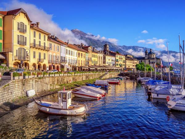 Als letzter italienischer Vorposten vor der Schweizer Grenze ist das Zentrum von Cannobio mit seinen pastellfarbenen Häusern, die auf ein Labyrinth aus gepflasterten Gassen blicken, besonders reizvoll. Die Via al Castello ist eine alte Straße, die seit Jahrhunderten praktisch unverändert geblieben ist, mit gewundenen Treppen, die sich zwischen den mehrstöckigen Häusern schlängeln. Die Promenade, eine der schönsten am Lago Maggiore, wird auf der einen Seite von historischen Gebäuden, Arkaden, Boutiquen und Cafés und auf der anderen Seite vom Strand und dem Wasser gesäumt. Die Promenade endet an der Piazza Vittorio Emanuele III, dem wichtigsten Platz der Stadt.