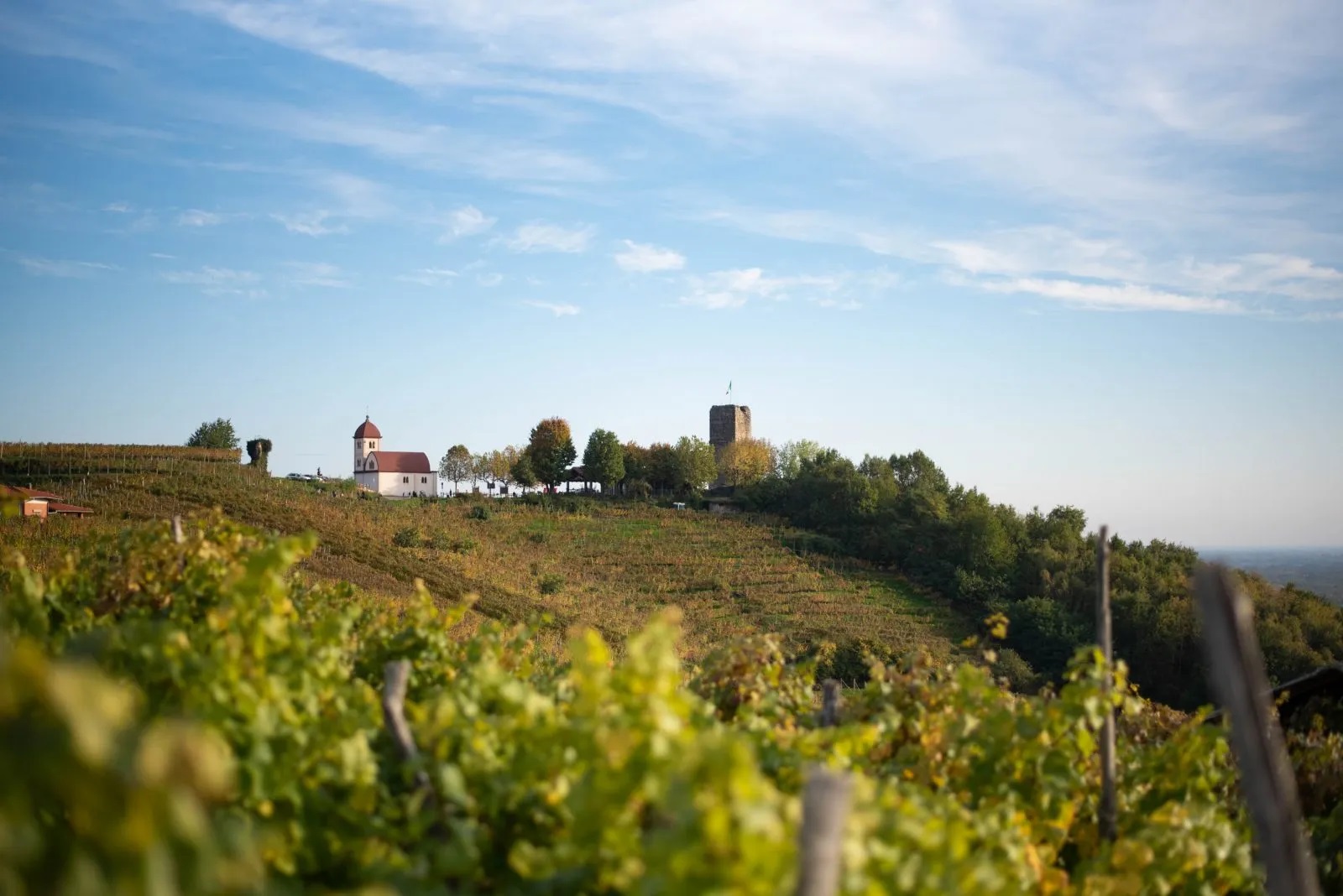 Gattinara, eine Kleinstadt in der Provinz Vercelli am Ufer des Sesia, ist die Heimat der gleichnamigen DOCG-Rebsorte, einer der renommiertesten Nebbioli des nördlichen Piemonts. Bei einem nicht allzu anstrengenden Spaziergang kann man auf der einen Seite das Panorama der Weinberge und auf der anderen Seite den Ortskern bewundern, der von der Kuppel seiner Kirche dominiert wird. Am Ende dieser Wanderung, die an einem Aussichtspunkt endet, befindet sich der Torre delle Castelle aus dem 11. Jahrhundert, eine alte Verteidigungsfestung. In jüngerer Zeit wurden hier auch eine Big Bench, eine riesige Bank, von der aus man die Aussicht genießen kann, sowie ein eindrucksvoller riesiger Kelch aus Eisen aufgestellt. Von hier aus führen eine Reihe von Rad- und Wanderwegen entlang oder durch die Weinberge.